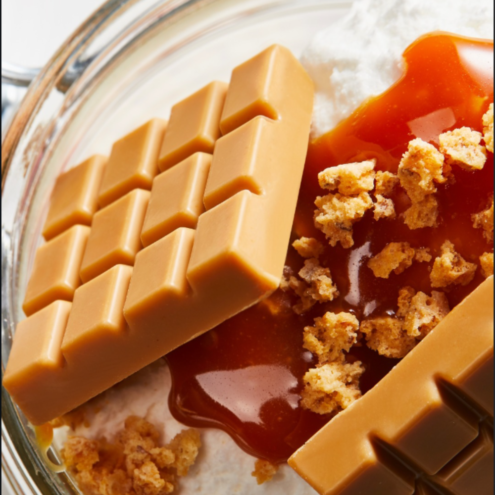 Need more caramel? Spoil with GOLD. Expertly crafted and created from a fine selection of ingredients like caramelised sugar and caramelised milk, this caramel chocolate has rich notes of toffee, butter, cream and an exciting dash of salt. Enjoy its pale amber colour with a golden hue that works well in almost any application.